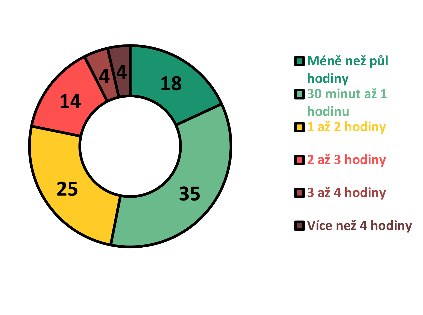 Z těch, kteří pravidelně uvádějí, že sociální sítě používají několikrát týdně a častěji, jich zhruba polovina (v posledním měření 53 %) tvrdí, že na sociálních sítích tráví maximálně hodinu času denně. Čtvrtina (v posledním měření 25 %) pak uvádí, že sociálním sítím věnuje hodinu až dvě ze svého běžného dne. Necelá šestina (v posledním měření 14 %) respondentů uvádí, že sociálním sítím věnují dvě až tři hodiny svého času. Více než tři hodiny tráví na sociálních sítích nejméně lidí, a to necelá desetina (v posledním měření 8 %).