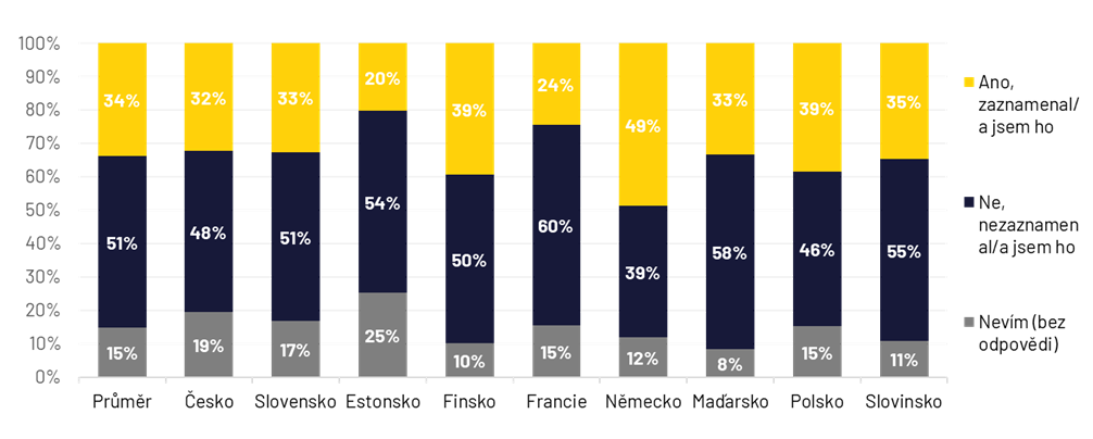 Na začátku loňského prosince uložila Evropská komise společnosti X pokutu 2,9 miliardy korun za porušení povinností v oblasti transparentnosti podle Nařízení o digitálních službách (DSA). Šlo tak o první pokutu uloženou v rámci aplikace DSA. V souvislosti s tím majitel společnosti X Elon Musk nebo i americký prezident Donald Trump obvinili Evropskou komisi z cenzury. I přes to, že se stále většina lidí napříč zeměmi shodne na tom, že o DSA jako celku nemají dostatek informací (63 %), to, že Evropská komise uložila společnosti X tuto pokutu, zaznamenalo 34 % lidí ve sledovaných zemích. Nejčastěji v Německu (49 %), ale značná část lidí o kauze ví i v Polsku (39 %) nebo Finsku (39 %). Nejméně často dění okolo pokuty zaznamenali lidé v Estonsku (20 %) nebo ve Francii (24 %). Tam jsou i celkově nejméně informovaní o nařízení DSA (70 %). Muži častěji zaznamenali pokutu uloženou společnosti X, podobně jako starší lidé nad 55 let.