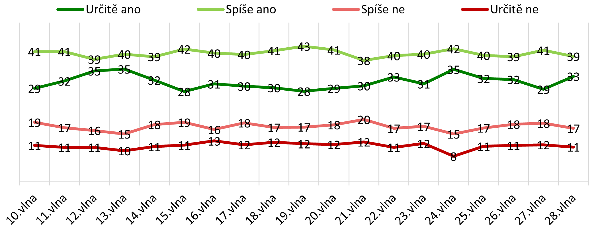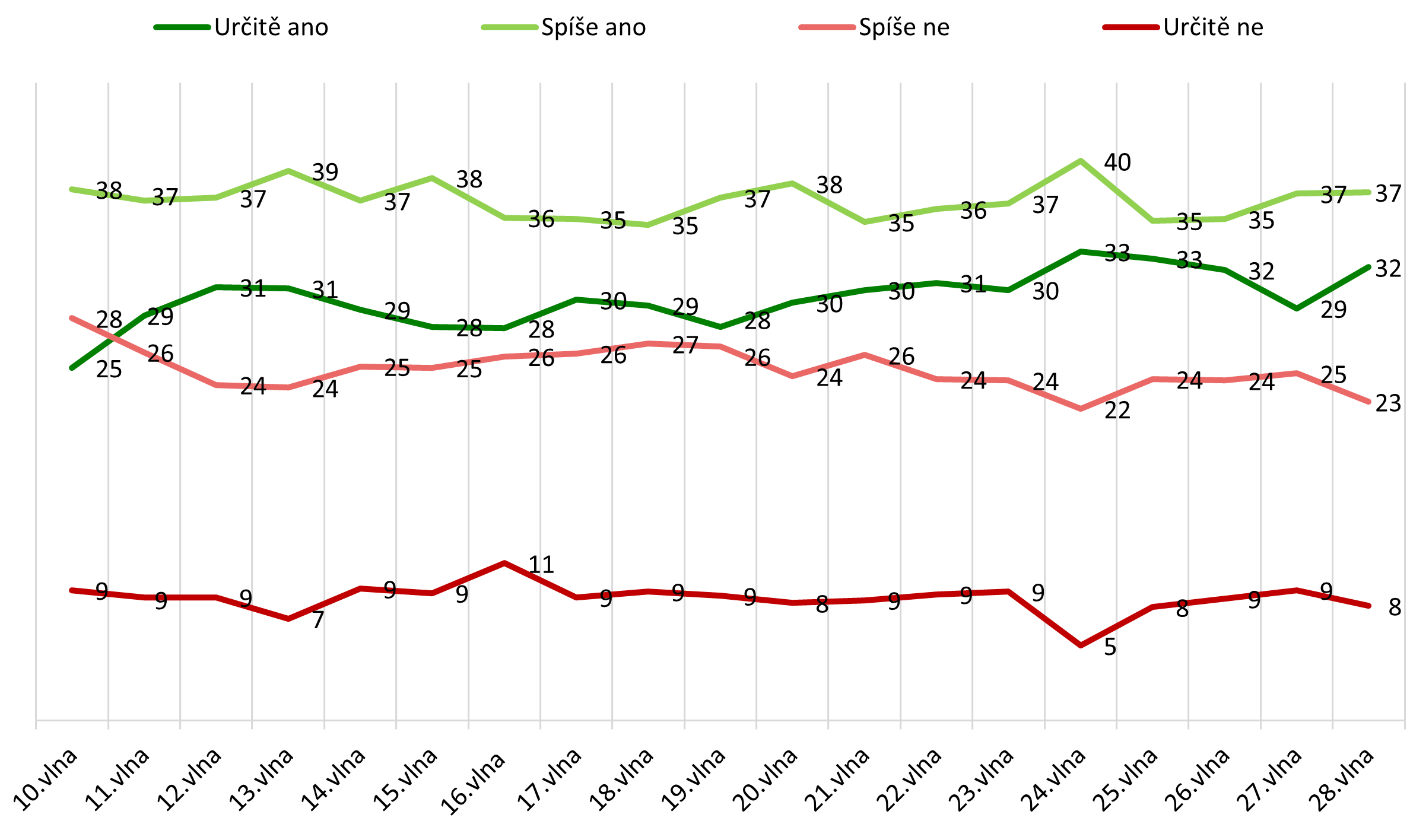 Třetina lidí (33 %) určitě považuje za správné omezování či znemožnění působení médií šířících nepravdivé či manipulativní informace, což je o 4 procentní body více než v minulé vlně. Dalších 39 % to považuje za spíše správné.