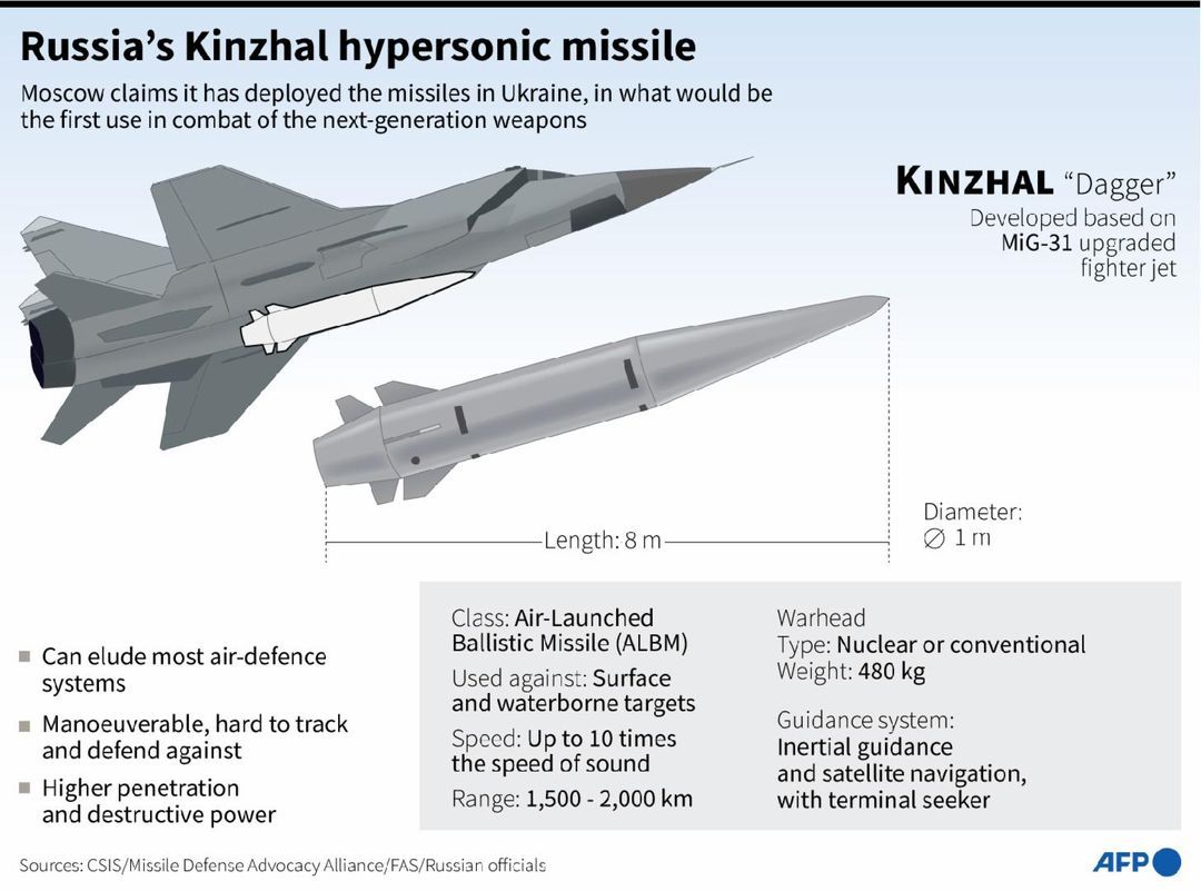 Rusko od začátku invaze na Ukrajinu již několikrát oznámilo, že testovalo nebo použilo nadzvukové zbraně, které dosahují až desetinásobku rychlosti zvuku. V březnu Moskva uvedla, že v boji poprvé použila vysoce přesnou nadzvukovou raketu Kinžal (rusky „dýka”), která zasáhla sklad zbraní na Ukrajině poblíž hranic s Rumunskem. Vladimir Putin označil tyto rakety za skupinu nových „neporazitelných”zbraní v ruském arzenálu.