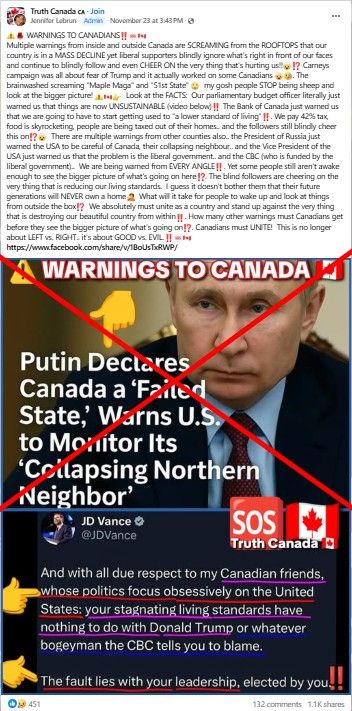Other posts tied the supposed comments from Putin to messages from US Vice President JD Vance on Canada’s immigration strategy.