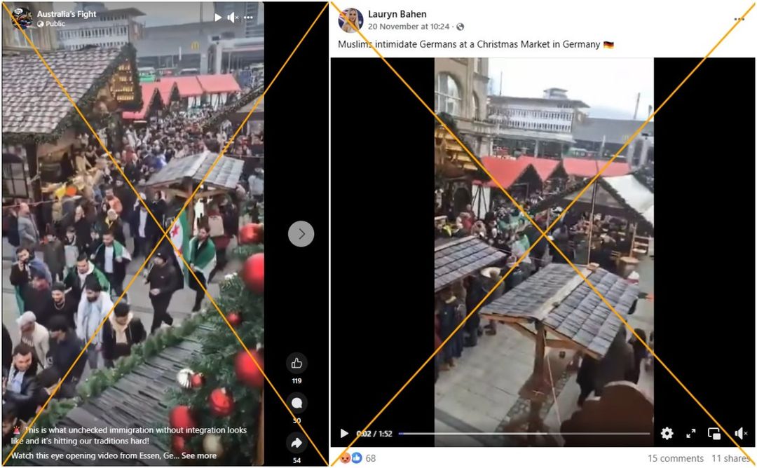 The video was also shared by another Australian influencer who frequently posts anti-immigration rhetoric, with the caption: “Muslims intimidate Germans at a Christmas Market in Germany.”