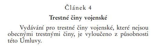 Evropská úmluva o vydávání osob se nevztahuje na vojenské trestné činy