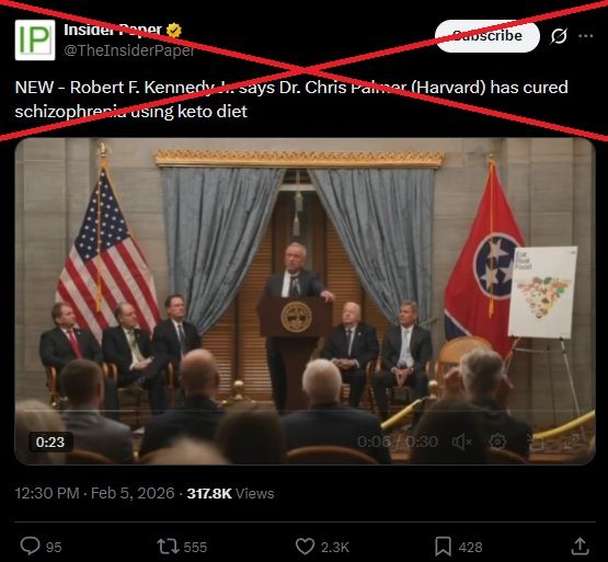 Speaking at the Tennessee state capitol February 5, 2026, Kennedy told the audience a Harvard University doctor had “cured schizophrenia using keto diet.”