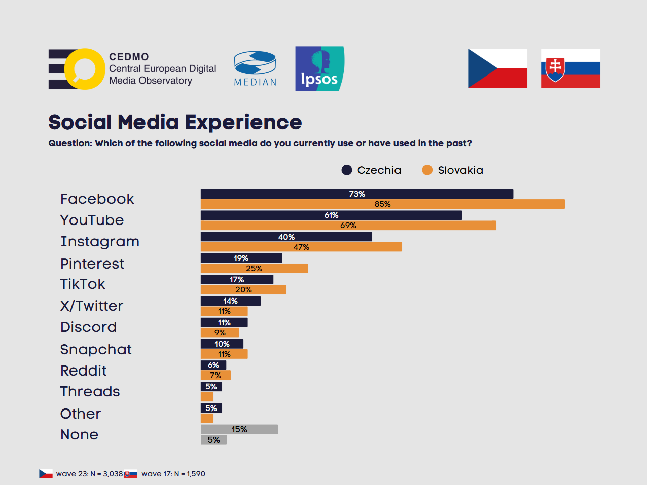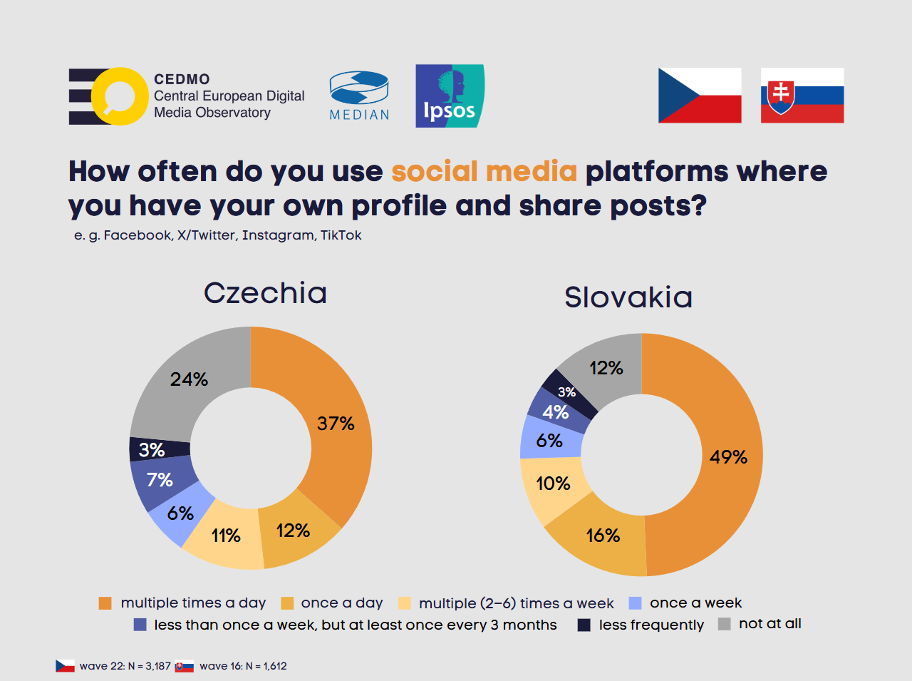 Both Czechs and Slovaks use social networks and chat platforms intensively, with Slovaks using them more than Czechs. However, Slovakia shows at the same time lower awareness and control of users over privacy settings. We have just published these findings, along with others, in a CEDMO Special Brief titled “Social Networks TikTok and X in a Comparative Czechoslovak Perspective”.