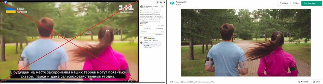 W sieci, od połowy września 2023 roku, krąży fałszywy materiał rzekomo wyprodukowany przez ukraińską telewizję 1+1, mający pokazywać „proekologiczną metodę” wykorzystywania ciał poległych żołnierzy jako nawozu rolniczego. Filmik rozpowszechniany w kilku językach, w tym po polsku, twierdzi, że ich zwłoki będą umieszczane w specjalnych workach i zakopywane w ziemi w celu uzyskania lepszych plonów. Jednak nie jest prawdą, że autorem materiału jest telewizja 1+1. AFP ustaliła również, że wideo wykorzystuje darmowe nagrania stockowe i materiały z innych mediów, a ukraińskie organizacje ekologiczne przekazały nam, że nie słyszały o takiej propozycji.