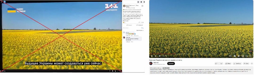 Ujęcia przedstawiające pola słoneczników w pierwszych sekundach fałszywego filmu pochodzą z materiału (zarchiwizowany link), który nadała 30 czerwca 2023 roku lokalna telewizja TPK MIC w Kamieńsku (wschodnia Ukraina). Nagranie poświęcone było symbolom narodowym Ukrainy i nosiło tytuł: „Symbole Ukrainy: unikalne ukraińskie kwiaty”.